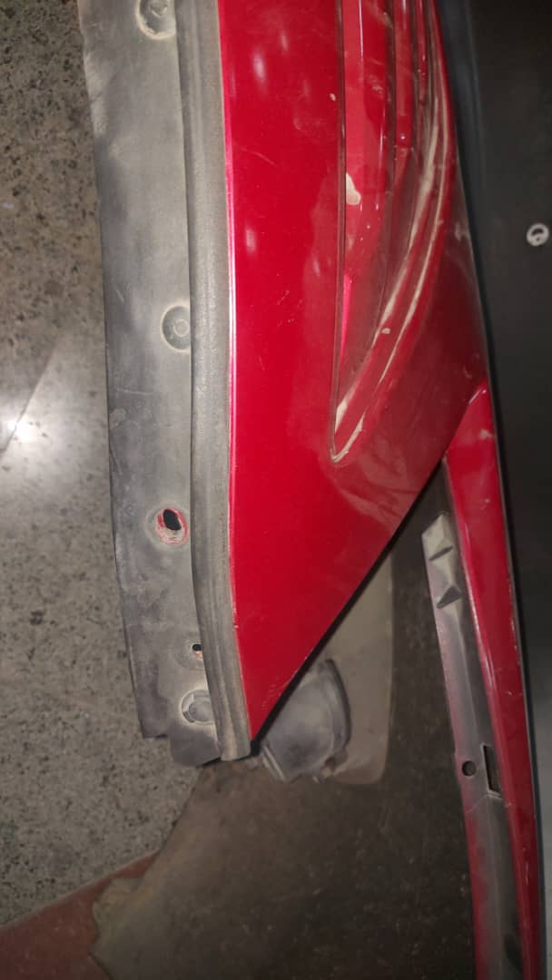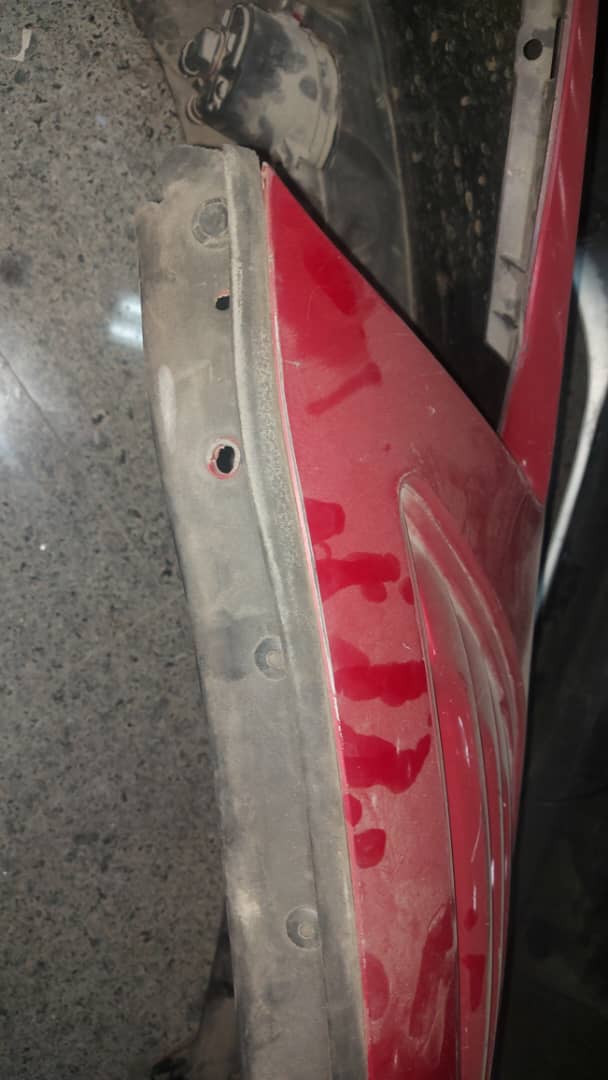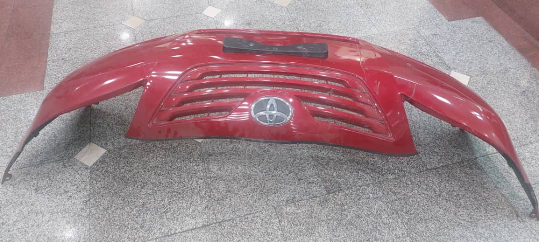 سپر جلو اصلی تویوتا کمری ۲۰۰۷ رنگ زرشکی کاملاً سالم بدون شکستگی، به همراه قاب نصب پلاک، فریم فلزی بالا، جلو پنجره اصلی، مه‌شکن و قاب مه‌شکن ، لوگوی اصلی تویوتا و واشر لاستیکی